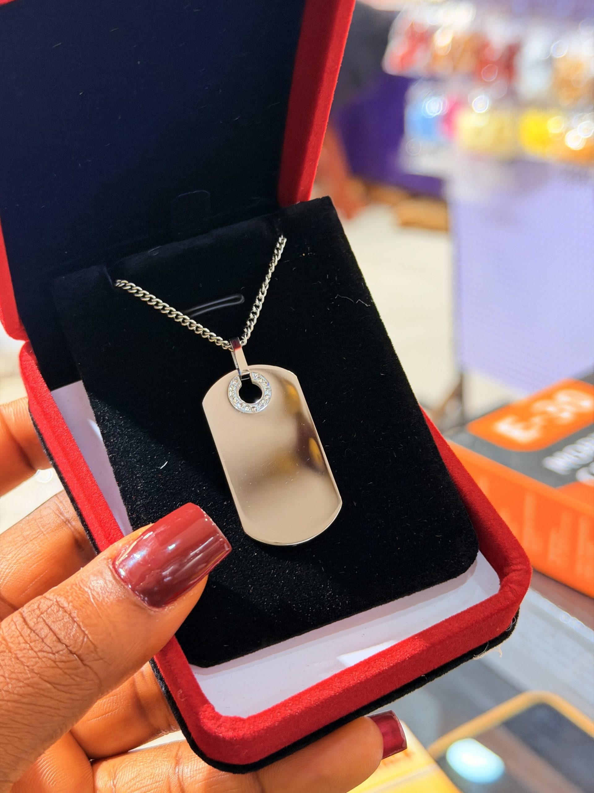 Be the first to review “Engraved silver dog tag necklace 002 with box” Cancel reply