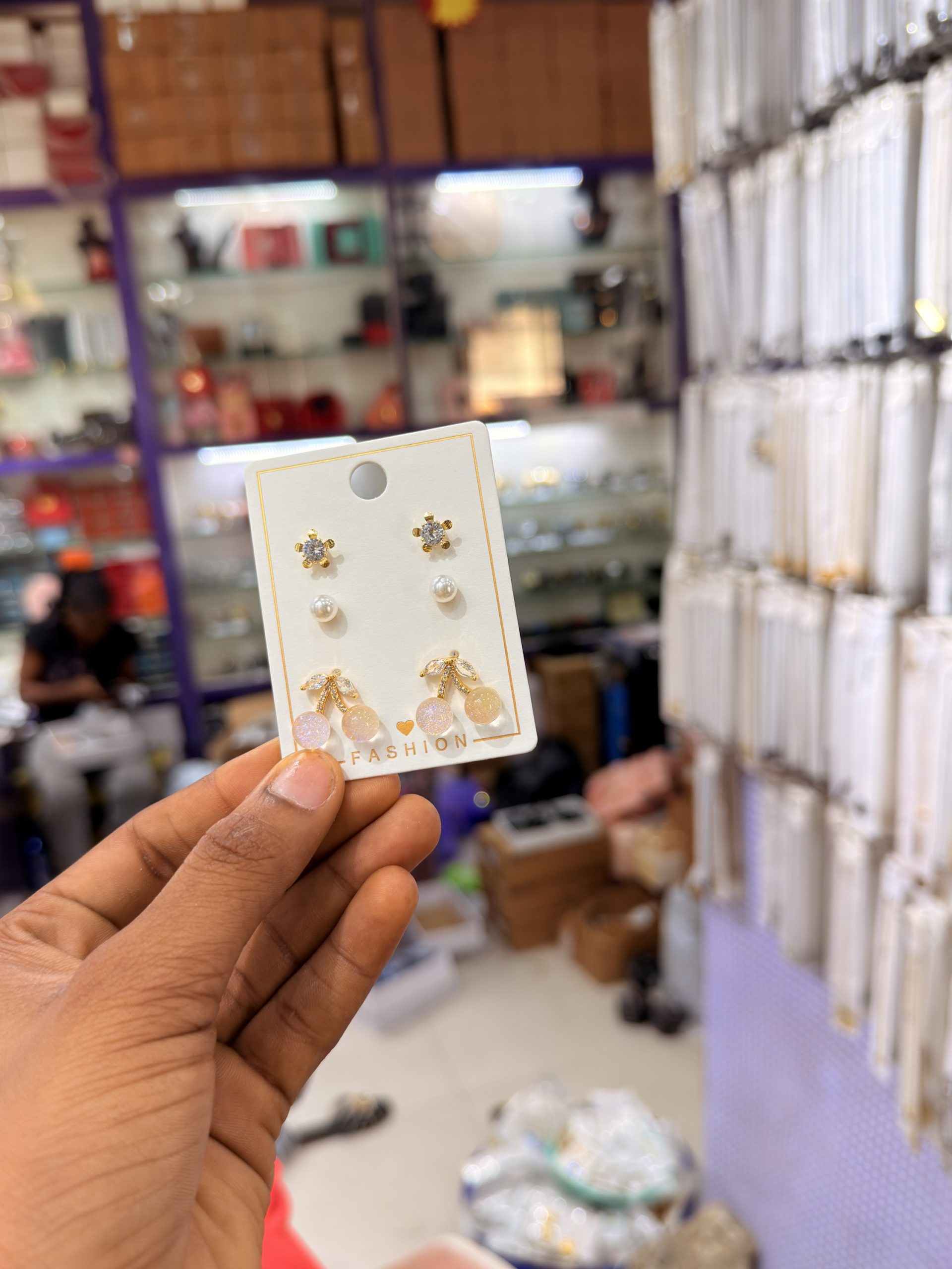 Previous Product Next Product Fashion Earring Set 003 ₦1,800 SKU: 57599 Category: Earrings 2 in stock 57599 Fashion Earring Set 003 quantity Buy Now Reviews (0) Reviews There are no reviews yet. Be the first to review “Fashion Earring Set 003” Cancel replyYour email address will not be published. Required fields are marked *Your rating * Rate… Perfect Good Average Not that bad Very poor Your review *Name * Email * Save my name, email, and website in this browser for the next time I comment. Opens in a new window Tweet This Product Opens in a new window Share on Facebook Opens in a new window Pin This Product Opens in a new window Mail This Product Related products Quick View Quick View EarringsOil drop earrings 013 ₦1,000 Buy Now Quick View Quick View EarringsFashion Earring Set 013 ₦1,800 Buy Now Quick View Quick View Bracelets, Earrings, Necklaces, RingsGold Pink Steel Set ₦4,500 Buy Now