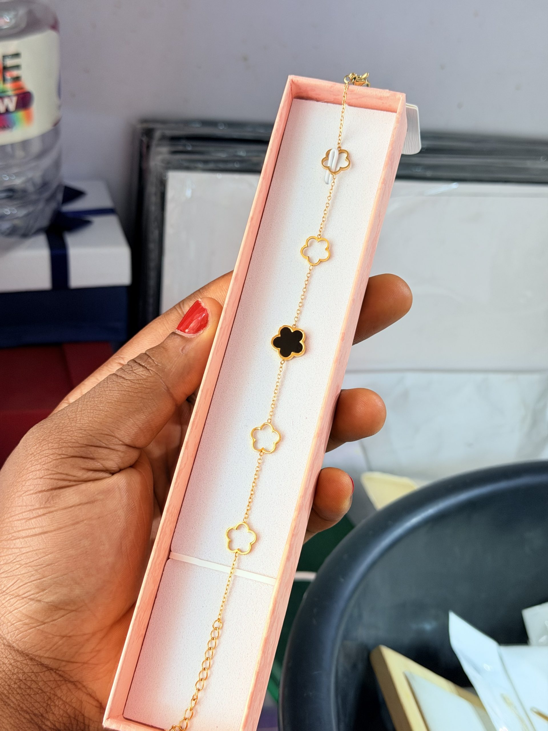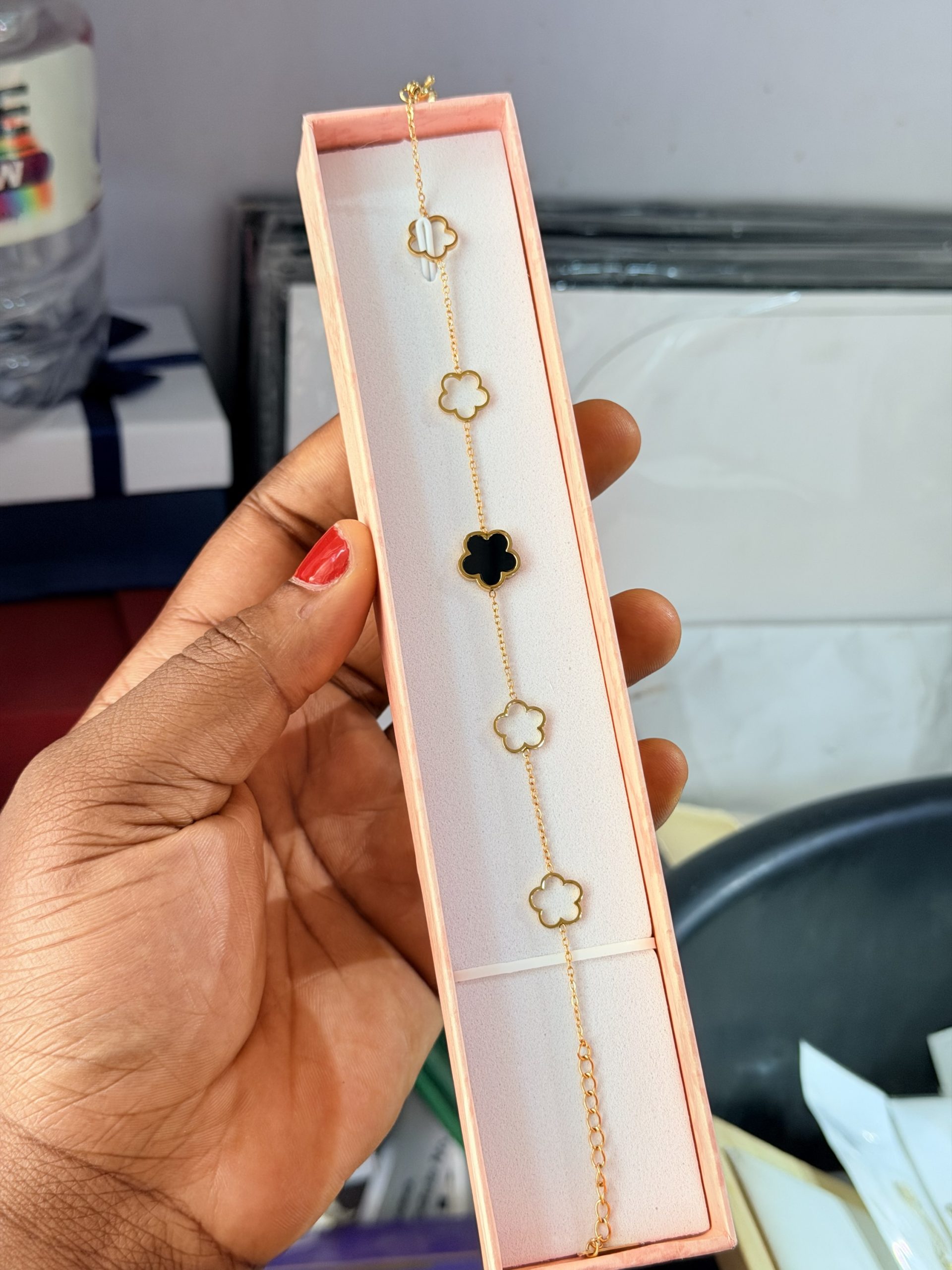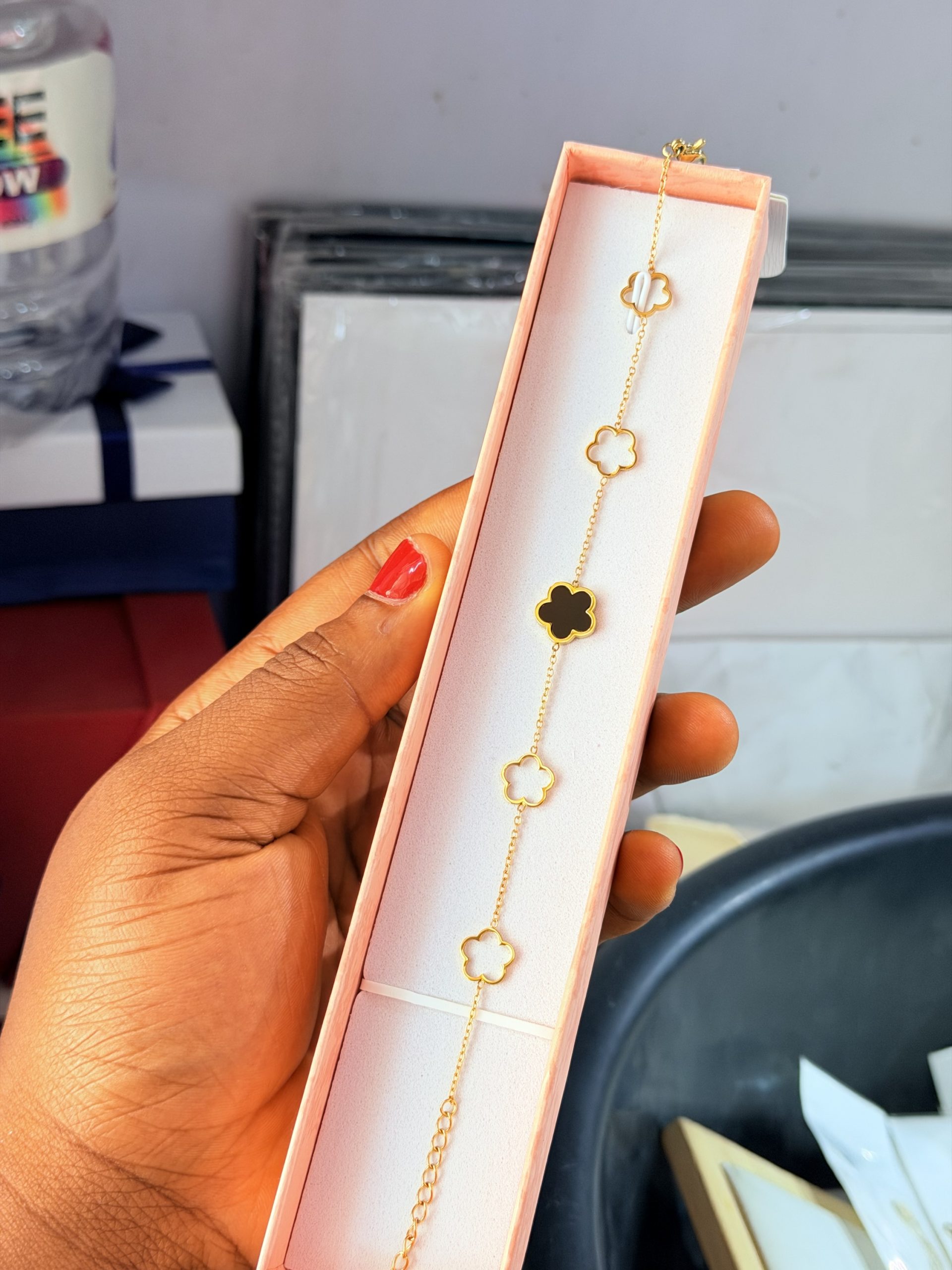 Previous Product Next Product Flower steel bracelet ₦1,900 SKU: 63074 Category: Bracelets 69 in stock 63074 Flower steel bracelet quantity Buy Now Reviews (0) Reviews There are no reviews yet. Be the first to review “Flower steel bracelet” Cancel replyYour email address will not be published. Required fields are marked *Your rating * Rate… Perfect Good Average Not that bad Very poor Your review *Name * Email * Save my name, email, and website in this browser for the next time I comment. Opens in a new window Tweet This Product Opens in a new window Share on Facebook Opens in a new window Pin This Product Opens in a new window Mail This Product Related products Quick View Quick View Moissanite Jewelries, BraceletsStar Moissanite bracelet ₦45,000 Buy Now Quick View Quick View Bracelets, RingsBow Tie love set ₦2,000 Buy Now Quick View Quick View Moissanite Jewelries, BraceletsRed Vca Moissanite bracelet ₦45,999 Buy Now