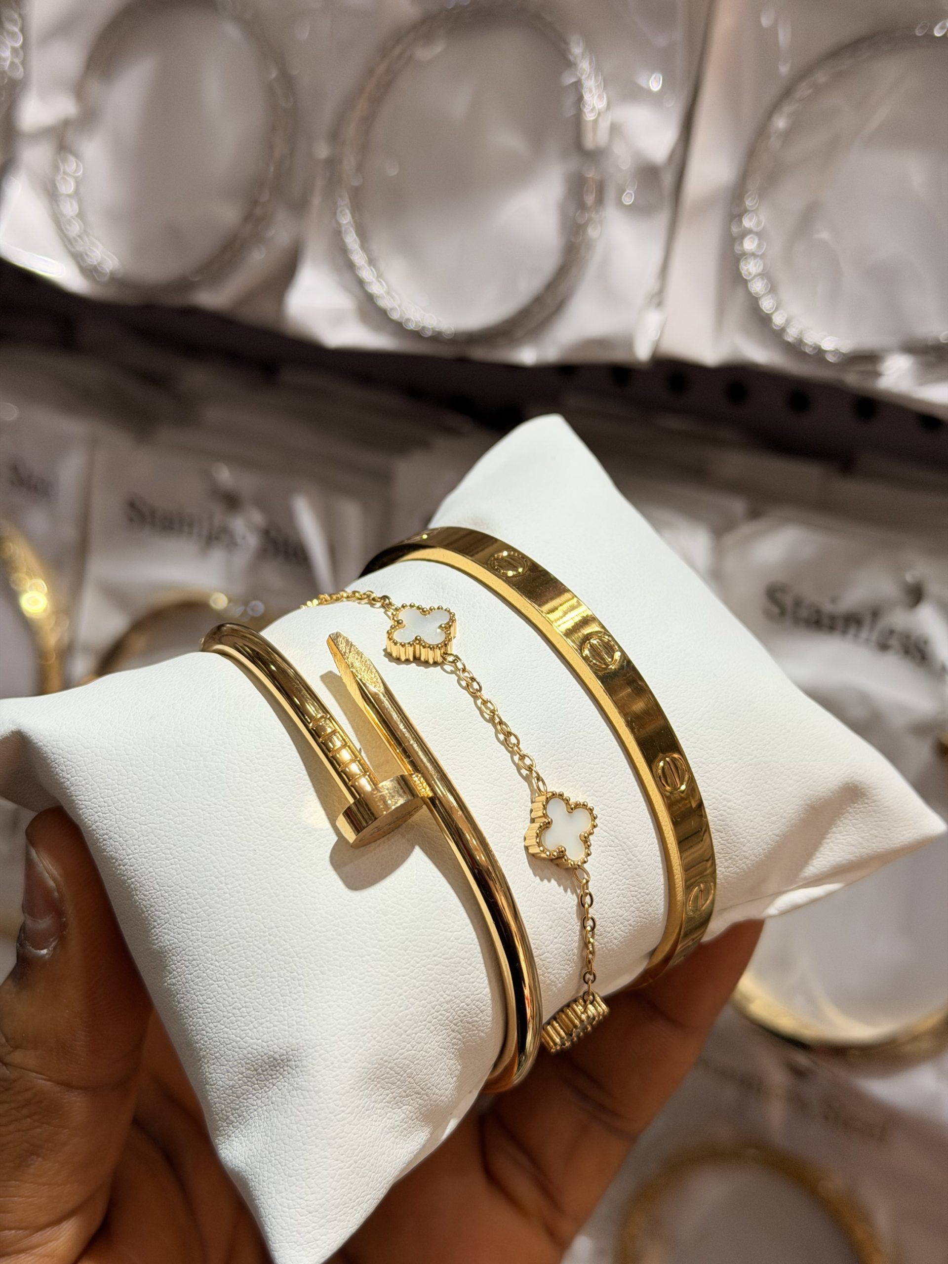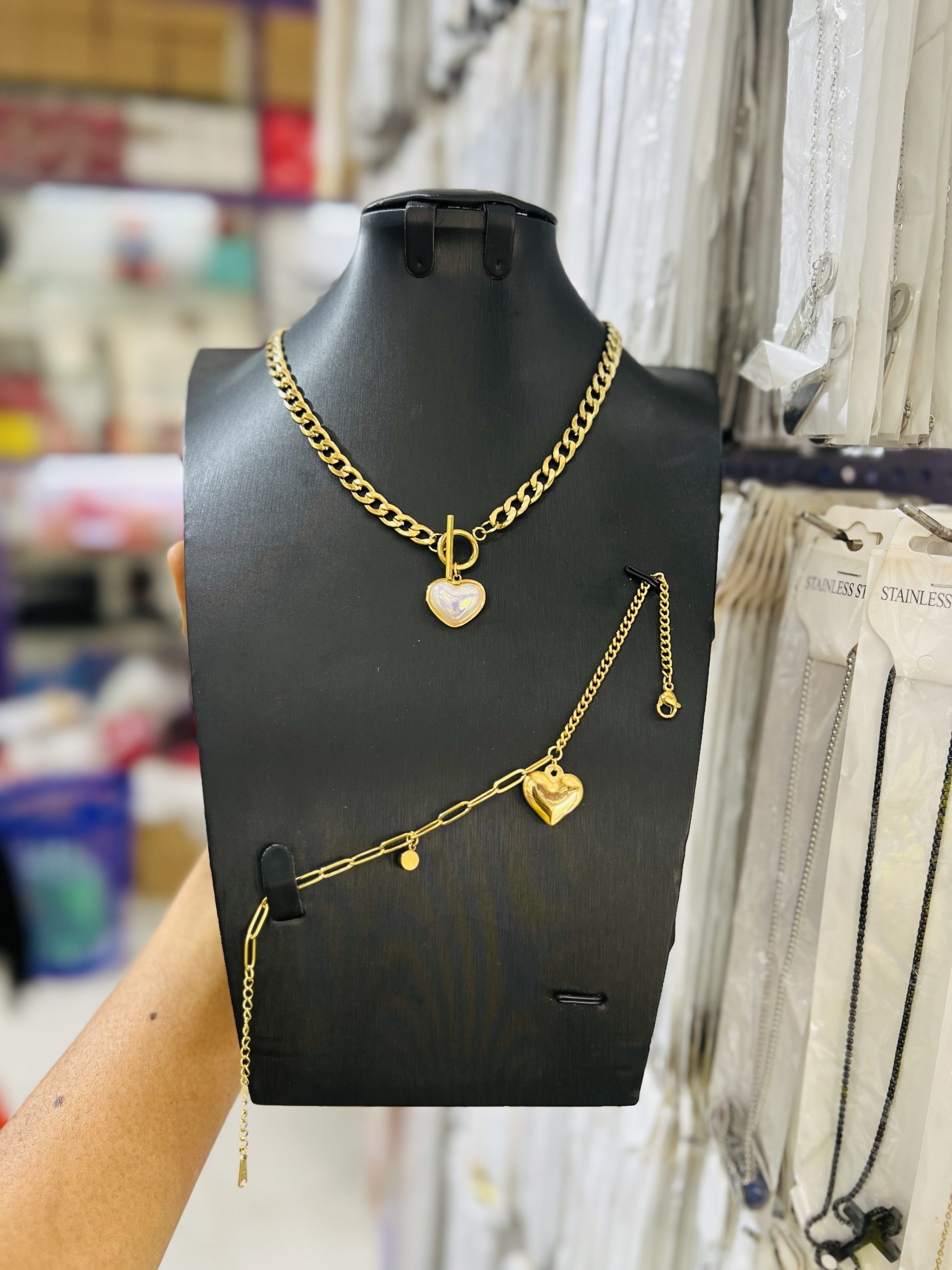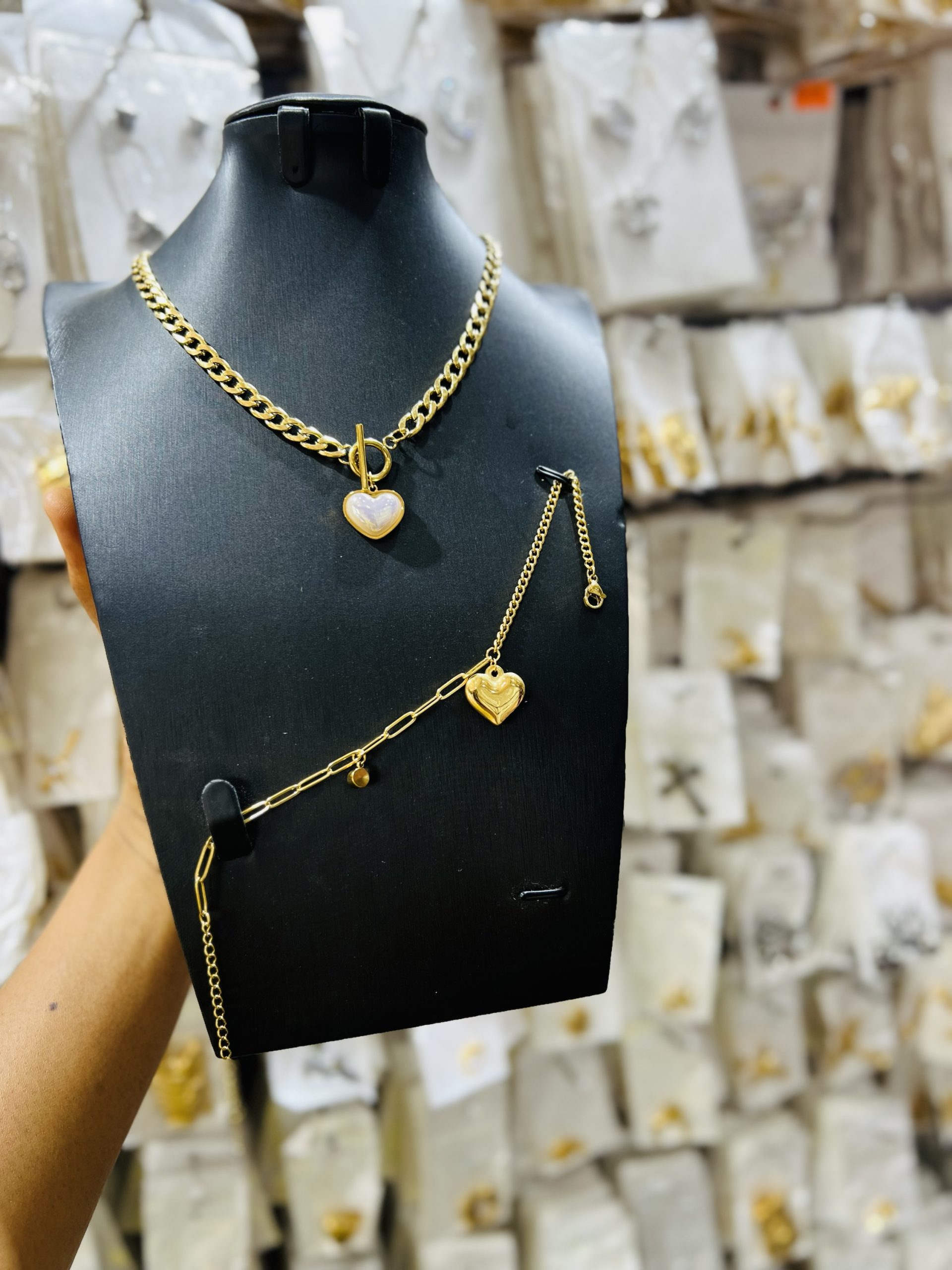 We are currently restocking on new products and will be unavailable for next few days. Thank you for your patience and apologize for any inconvenience. See you soon. Previous Product Next Product Gold love pearl necklace and bracelet ₦5,099 SKU: 53842 Categories: Bracelets, Necklaces Reviews (0) Reviews There are no reviews yet. Be the first to review “Gold love pearl necklace and bracelet” Cancel replyYour email address will not be published. Required fields are marked *Your rating * Rate… Perfect Good Average Not that bad Very poor Your review *Name * Email * Save my name, email, and website in this browser for the next time I comment. Opens in a new window Tweet This Product Opens in a new window Share on Facebook Opens in a new window Pin This Product Opens in a new window Mail This Product Related products Quick View Out of Stock Quick View BraceletsTennis bracelet 008 ₦2,200 Read more Quick View Quick View BraceletsMale statement bracelet 007 ₦4,500 Buy Now Quick View Out of Stock Quick View BraceletsChunky bracelet 013 ₦3,099 Read more