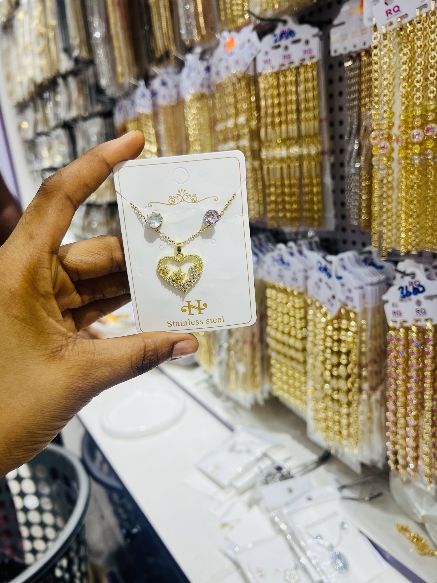 Previous Product Next Product Gold Steel Love Set ₦1,200 SKU: 57993 Category: Necklaces 6 in stock 57993 Gold Steel Love Set quantity Buy Now Reviews (0) Reviews There are no reviews yet. Be the first to review “Gold Steel Love Set” Cancel replyYour email address will not be published. Required fields are marked *Your rating * Rate… Perfect Good Average Not that bad Very poor Your review *Name * Email * Save my name, email, and website in this browser for the next time I comment. Opens in a new window Tweet This Product Opens in a new window Share on Facebook Opens in a new window Pin This Product Opens in a new window Mail This Product Related products Quick View Quick View NecklacesSteel blanks 004 ₦1,200 Buy Now Quick View Quick View NecklacesXuping pendant (6) 003 ₦7,700 Buy Now Quick View Quick View NecklacesZirconia Necklace 016 ₦5,000 Buy Now