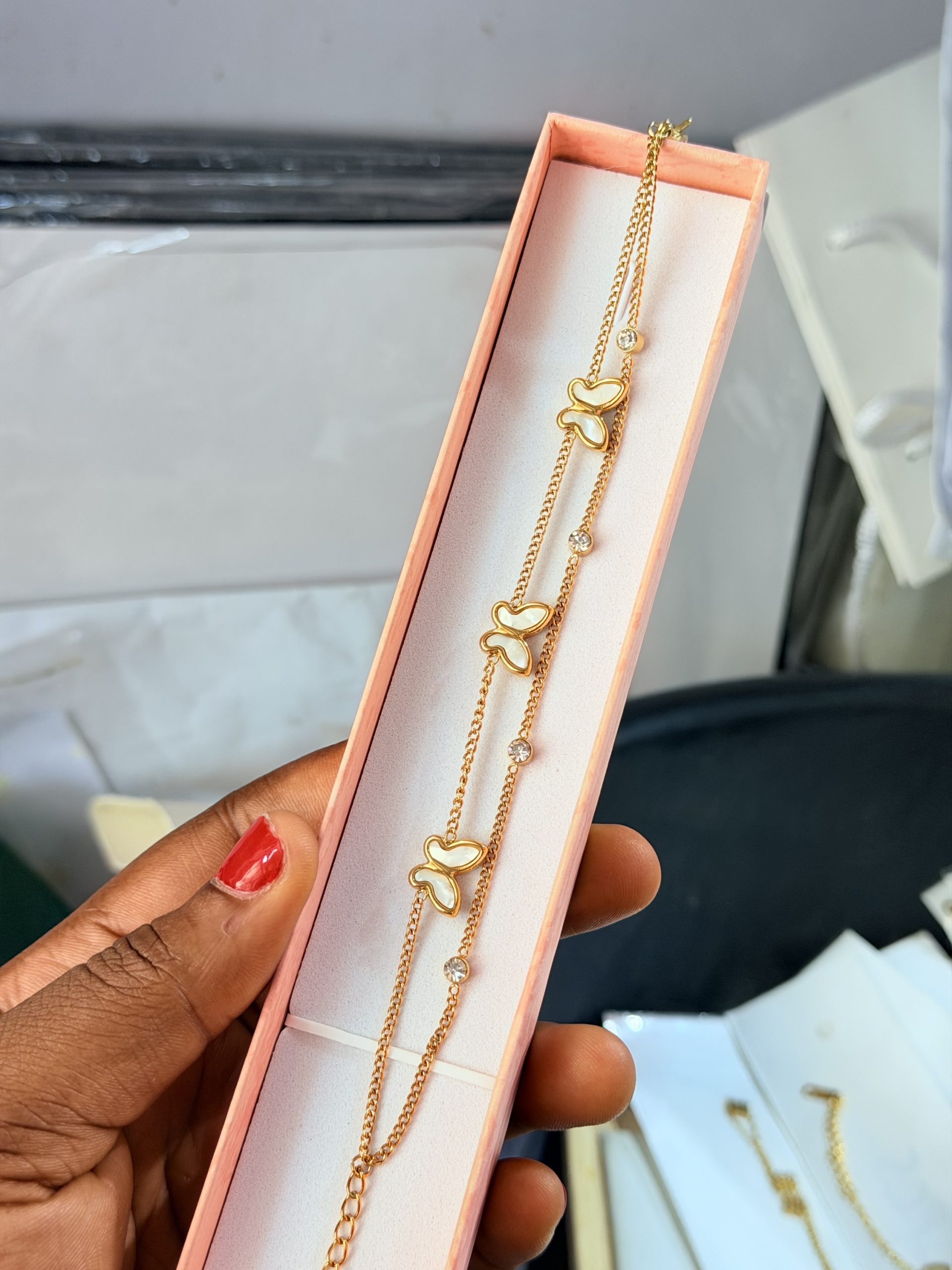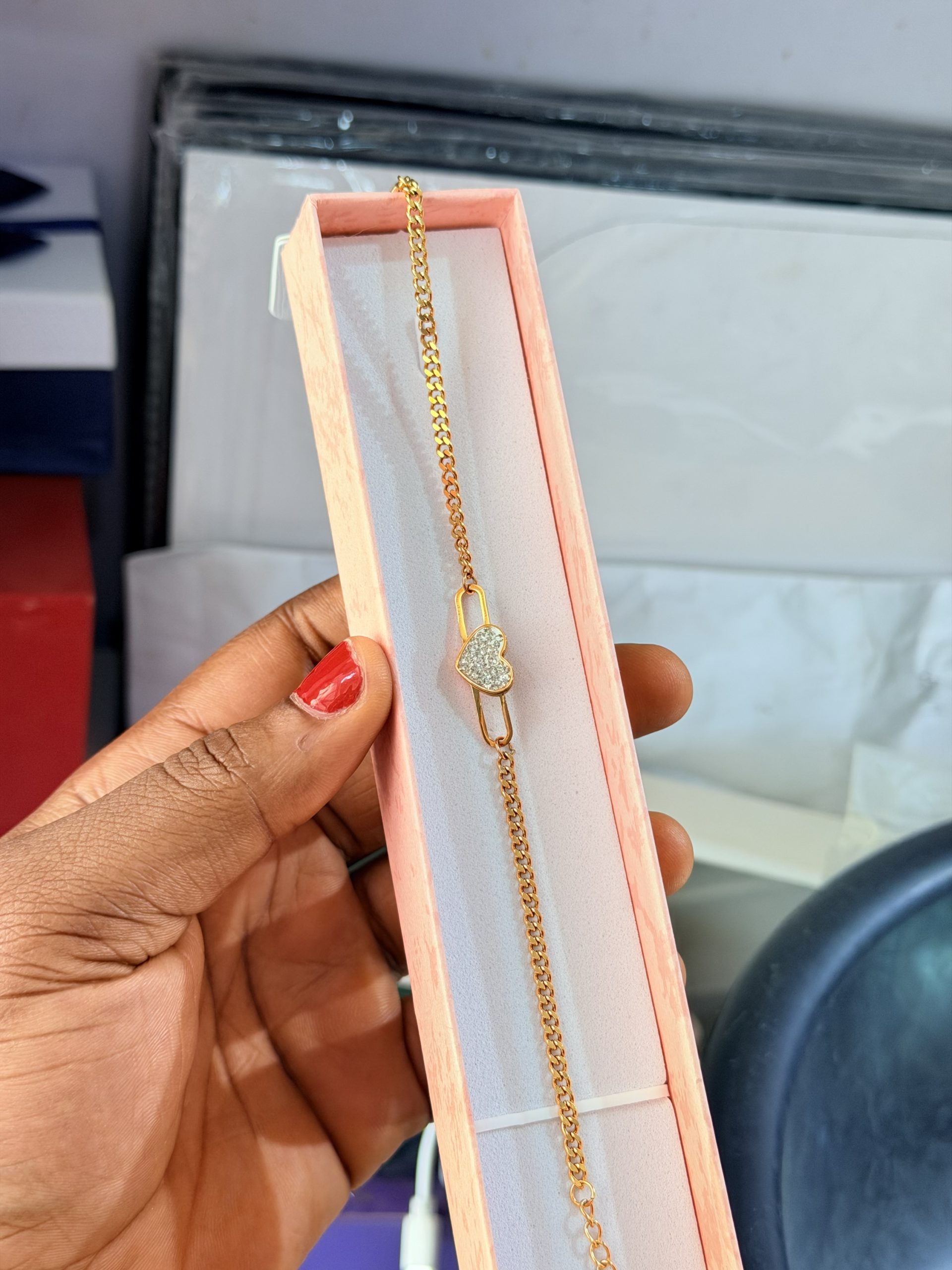Previous Product Next Product Heart steel bracelet ₦1,700 SKU: 63130 Category: Bracelets 6 in stock 63130 Heart steel bracelet quantity Buy Now Reviews (0) Reviews There are no reviews yet. Be the first to review “Heart steel bracelet” Cancel replyYour email address will not be published. Required fields are marked *Your rating * Rate… Perfect Good Average Not that bad Very poor Your review *Name * Email * Save my name, email, and website in this browser for the next time I comment. Opens in a new window Tweet This Product Opens in a new window Share on Facebook Opens in a new window Pin This Product Opens in a new window Mail This Product Related products Quick View Quick View BraceletsCeramic bracelet 007 ₦2,500 Rated 2.00 out of 5Buy Now Quick View Out of Stock Quick View BraceletsAmiga bracelet 007 ₦2,000 Read more Quick View Quick View BraceletsDior steel bracelet ₦2,200 Buy Now