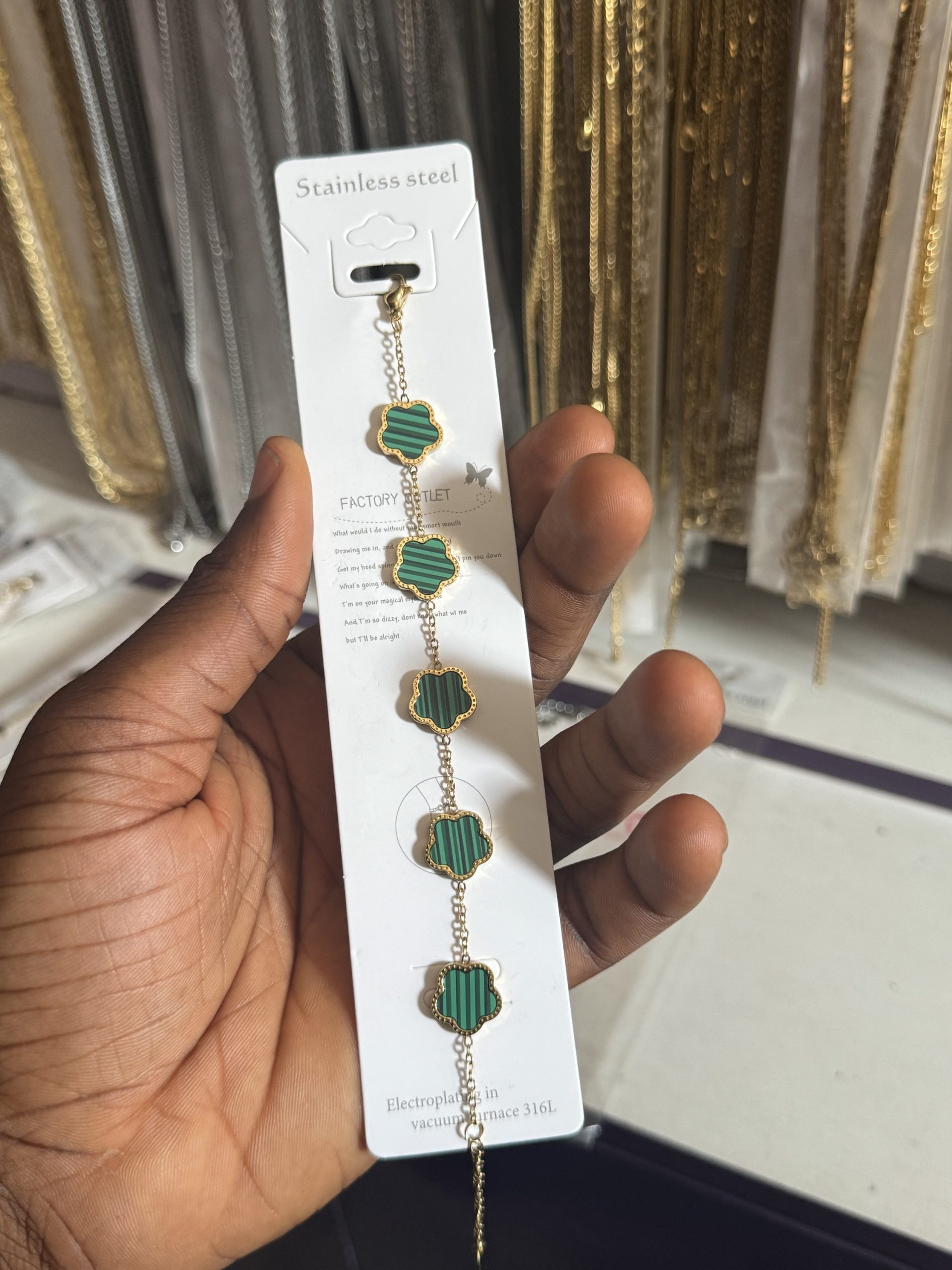 Previous Product Next Product Light blue Vca bracelet ₦1,500 Category: Bracelets 34 in stock Light blue Vca bracelet quantity Buy Now Reviews (0) Reviews There are no reviews yet. Be the first to review “Light blue Vca bracelet” Cancel replyYour email address will not be published. Required fields are marked *Your rating * Rate… Perfect Good Average Not that bad Very poor Your review *Name * Email * Save my name, email, and website in this browser for the next time I comment. Opens in a new window Tweet This Product Opens in a new window Share on Facebook Opens in a new window Pin This Product Opens in a new window Mail This Product Related products Quick View Quick View Moissanite Jewelries, BraceletsSwarovski moissanite bracelet ₦45,999 Buy Now Quick View Quick View Moissanite Jewelries, Bracelets10 Circular Moissanite bracelet ₦45,999 Buy Now Quick View Quick View Moissanite Jewelries, BraceletsCurved tennis moissanite bracelet ₦60,999 Buy Now