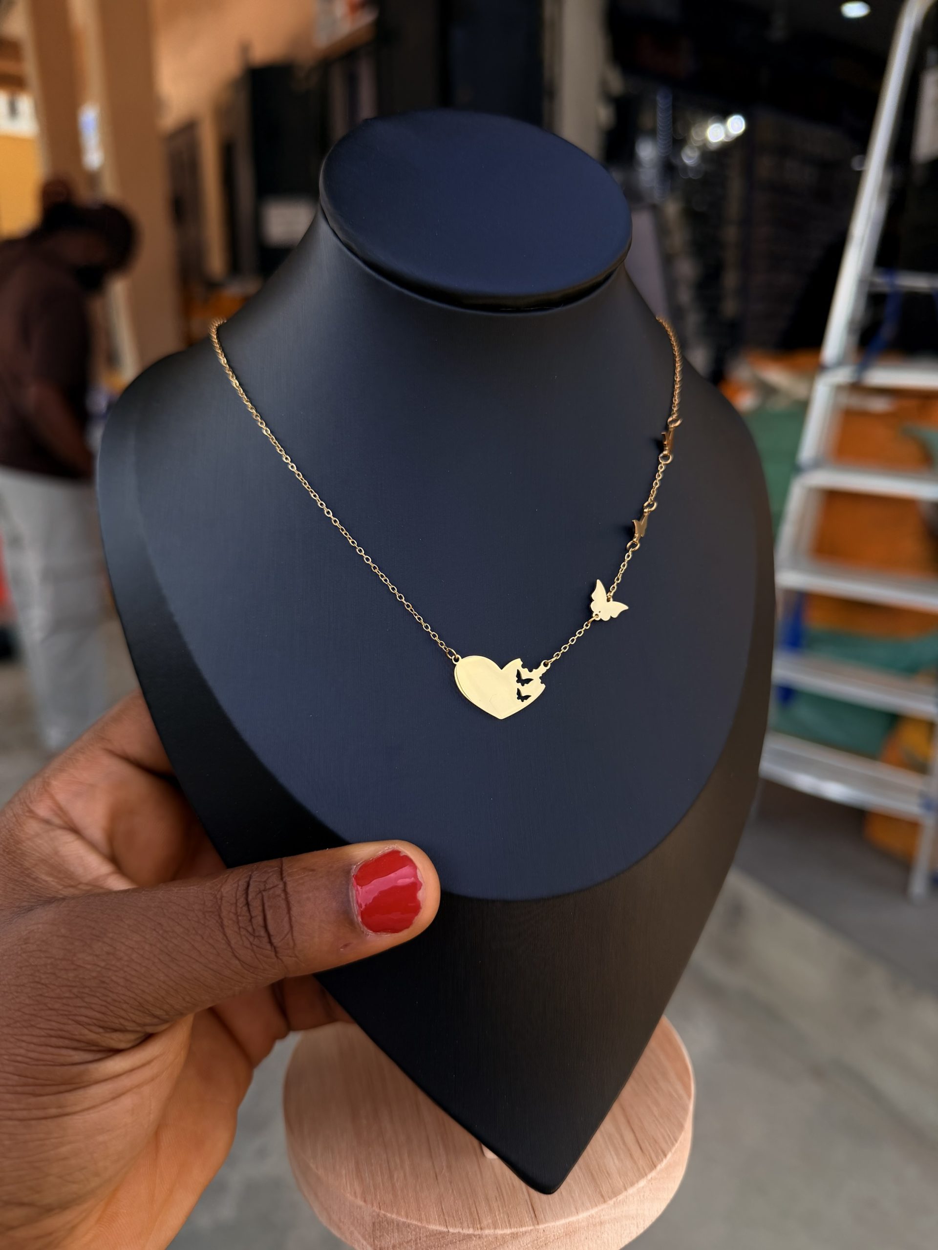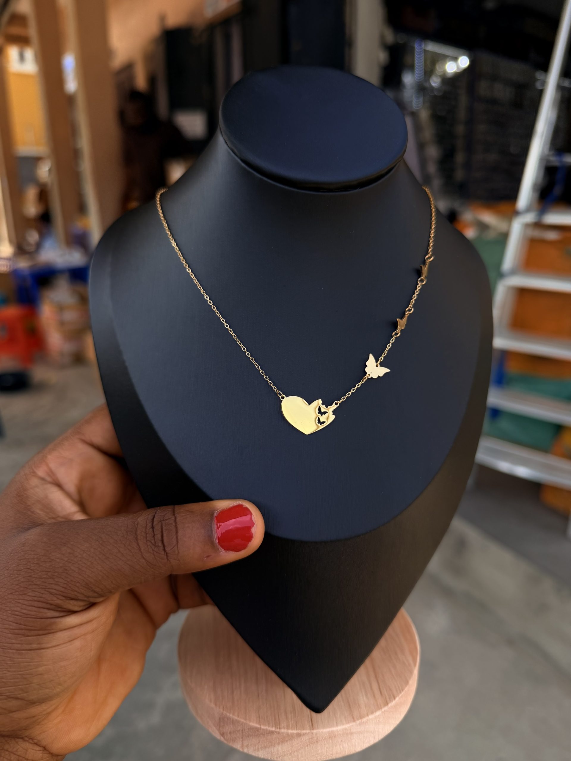 Previous Product Next Product Butterfly steel necklace ₦1,700 SKU: 62563 Category: Necklaces 46 in stock 62563 Butterfly steel necklace quantity Buy Now Reviews (0) Reviews There are no reviews yet. Be the first to review “Butterfly steel necklace” Cancel replyYour email address will not be published. Required fields are marked *Your rating * Rate… Perfect Good Average Not that bad Very poor Your review *Name * Email * Save my name, email, and website in this browser for the next time I comment. Opens in a new window Tweet This Product Opens in a new window Share on Facebook Opens in a new window Pin This Product Opens in a new window Mail This Product Related products Quick View Quick View NecklacesStar steel necklace ₦3,200 Buy Now Quick View Quick View Moissanite Jewelries, NecklacesLady V Moissanite Necklace ₦45,000 Buy Now Quick View Quick View NecklacesC steel necklace ₦2,200 Buy Now
