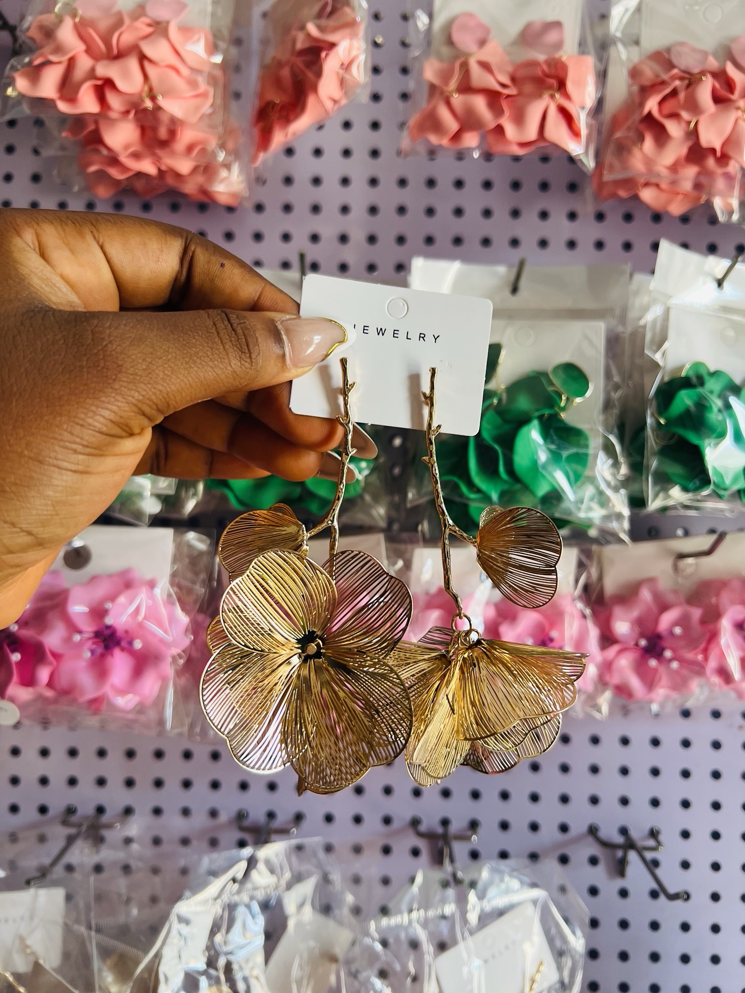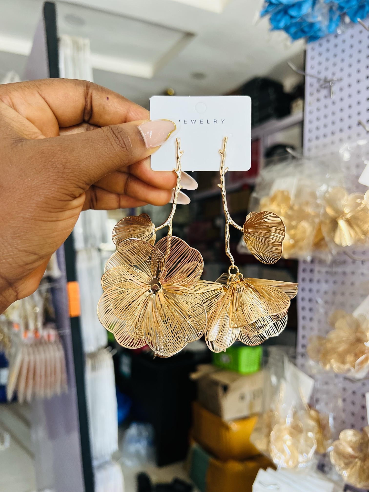 Previous Product Next Product Gold dropping flower earrings ₦3,500 Category: Earrings 17 in stock Gold dropping flower earrings quantity Buy Now Reviews (0) Reviews There are no reviews yet. Be the first to review “Gold dropping flower earrings” Cancel replyYour email address will not be published. Required fields are marked *Your rating * Rate… Perfect Good Average Not that bad Very poor Your review *Name * Email * Save my name, email, and website in this browser for the next time I comment. Opens in a new window Tweet This Product Opens in a new window Share on Facebook Opens in a new window Pin This Product Opens in a new window Mail This Product Related products Quick View Out of Stock Quick View Earrings, NecklacesLuxury steel gold set comes with exact box 017 ₦2,500 Read more Quick View Quick View Bracelets, Earrings, Necklaces, RingsRomanian gold pearl set ₦9,500 Buy Now Quick View Quick View Bracelets, Earrings, Necklaces, RingsSunbelle baby jewelry set 001 ₦4,800 Buy Now