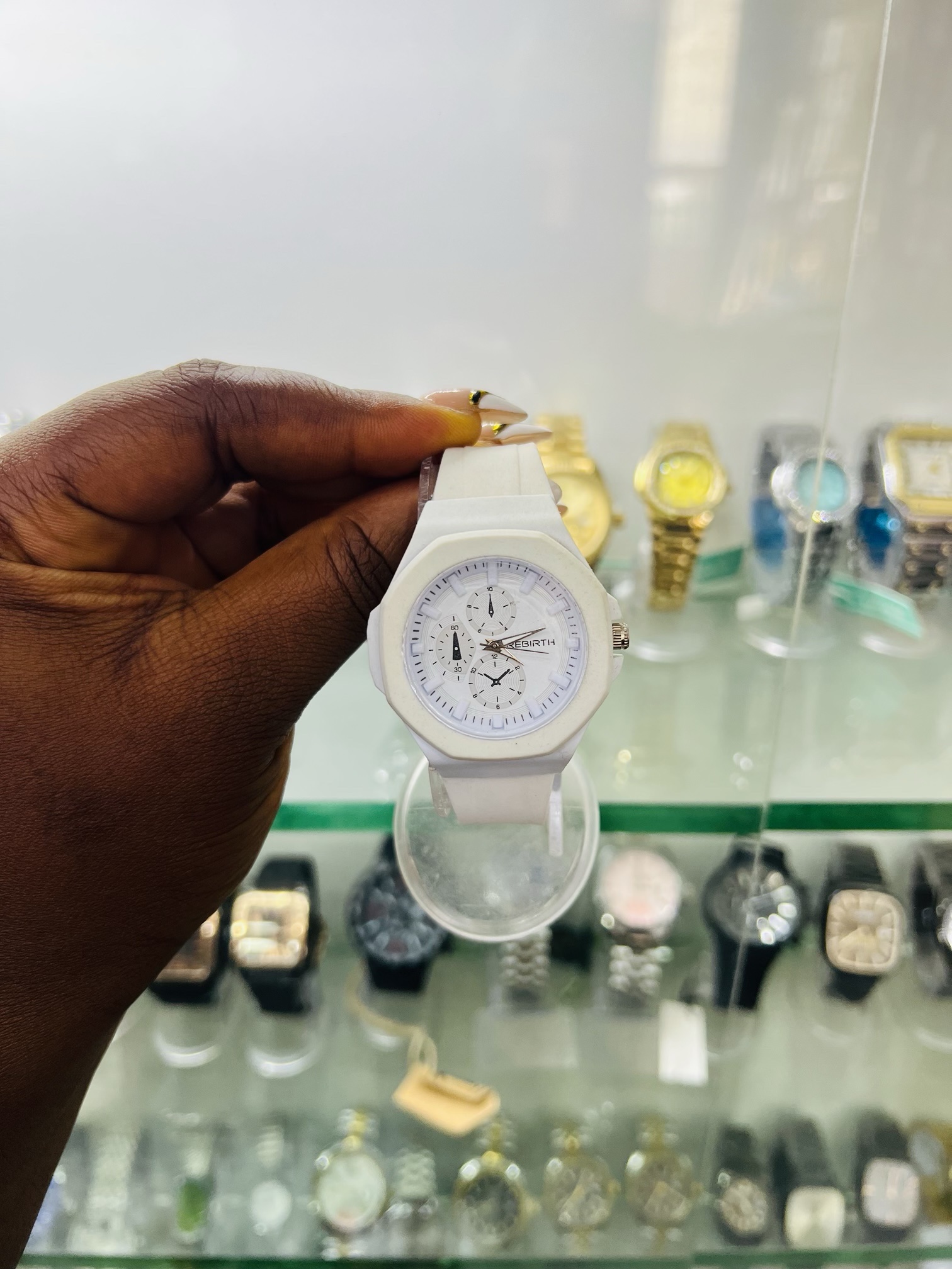 Previous Product Next Product Rebirth silver square pink face watch ₦7,500 Category: Watches 3 in stock Rebirth silver square pink face watch quantity Buy Now Reviews (0) Reviews There are no reviews yet. Be the first to review “Rebirth silver square pink face watch” Cancel replyYour email address will not be published. Required fields are marked *Your rating * Rate… Perfect Good Average Not that bad Very poor Your review *Name * Email * Save my name, email, and website in this browser for the next time I comment. Opens in a new window Tweet This Product Opens in a new window Share on Facebook Opens in a new window Pin This Product Opens in a new window Mail This Product Related products Quick View Quick View WatchesRebirth silver blue face ₦11,500 Buy Now Quick View Quick View WatchesRolex Silver black face watch ₦11,000 Buy Now Quick View Quick View WatchesRebirth brown leather watch ₦9,500 Buy Now