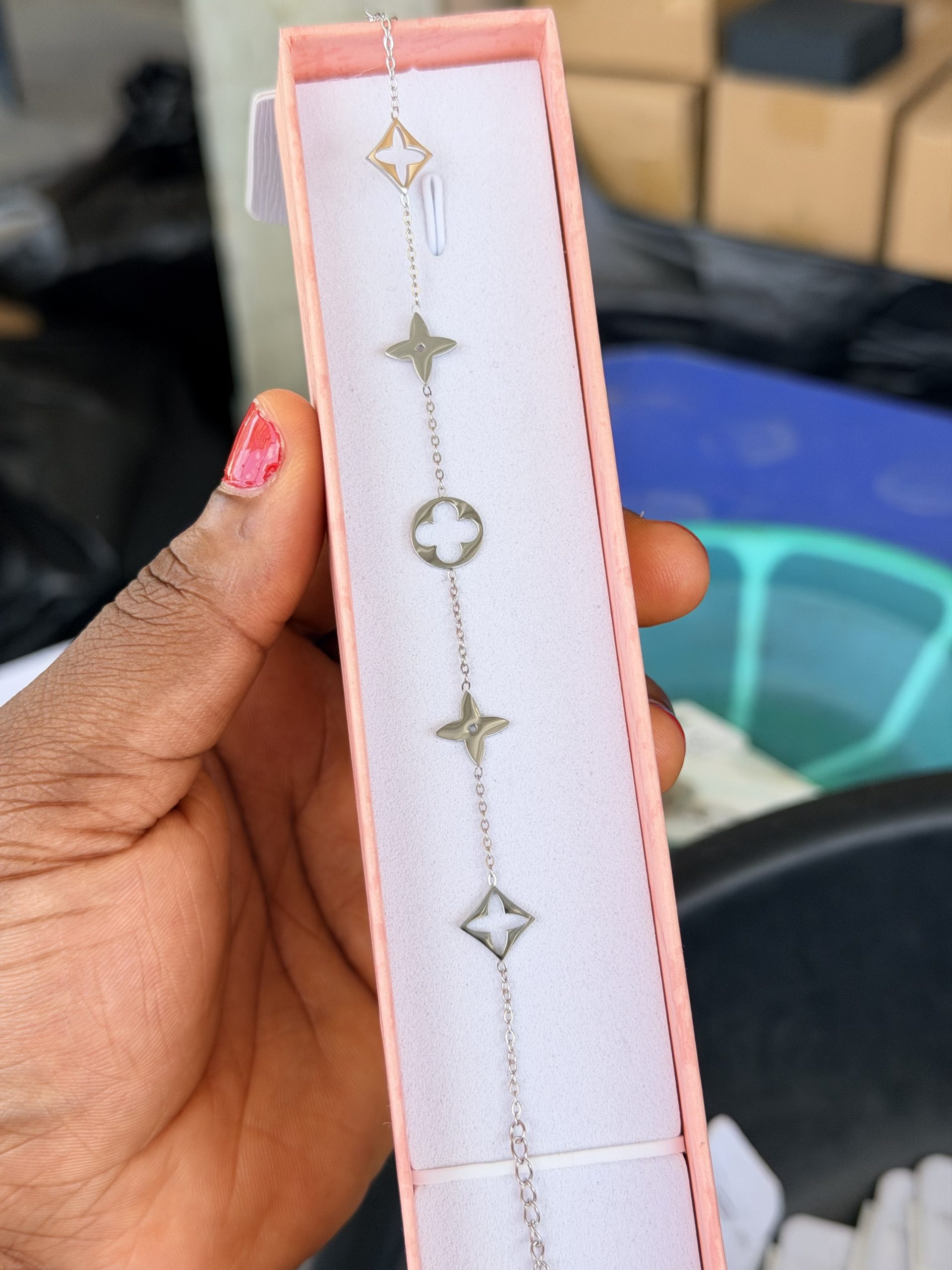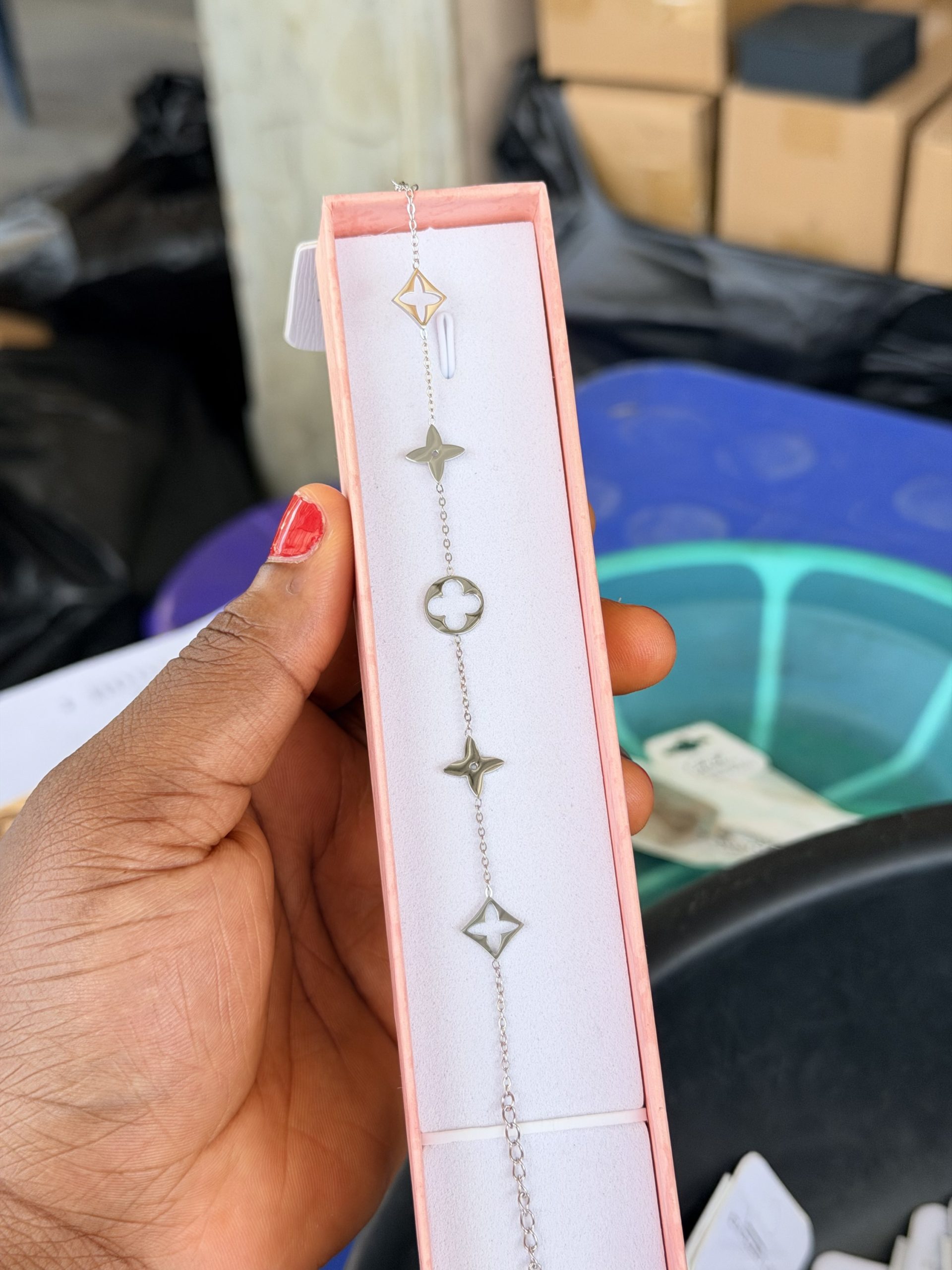 Previous Product Next Product Silver lv steel bracelet ₦1,800 SKU: 63280 Category: Bracelets 57 in stock 63280 Silver lv steel bracelet quantity Buy Now Reviews (0) Reviews There are no reviews yet. Be the first to review “Silver lv steel bracelet” Cancel replyYour email address will not be published. Required fields are marked *Your rating * Rate… Perfect Good Average Not that bad Very poor Your review *Name * Email * Save my name, email, and website in this browser for the next time I comment. Opens in a new window Tweet This Product Opens in a new window Share on Facebook Opens in a new window Pin This Product Opens in a new window Mail This Product Related products Quick View Quick View BraceletsDior steel bracelet ₦2,200 Buy Now Quick View Quick View Moissanite Jewelries, BraceletsBlack Vca Moissanite bracelet ₦45,999 Buy Now Quick View Quick View Moissanite Jewelries, BraceletsRed Vca Moissanite bracelet ₦45,999 Buy Now