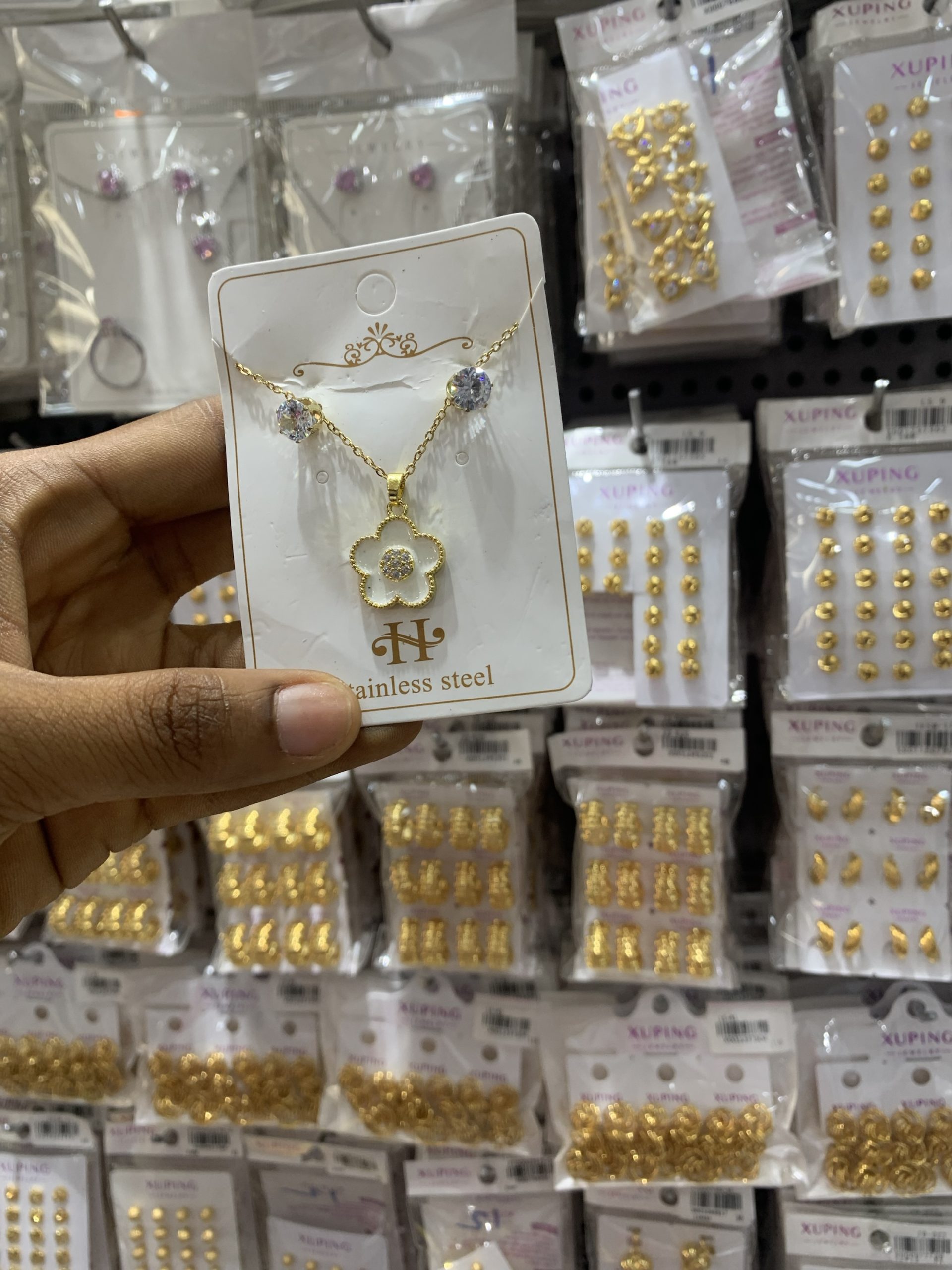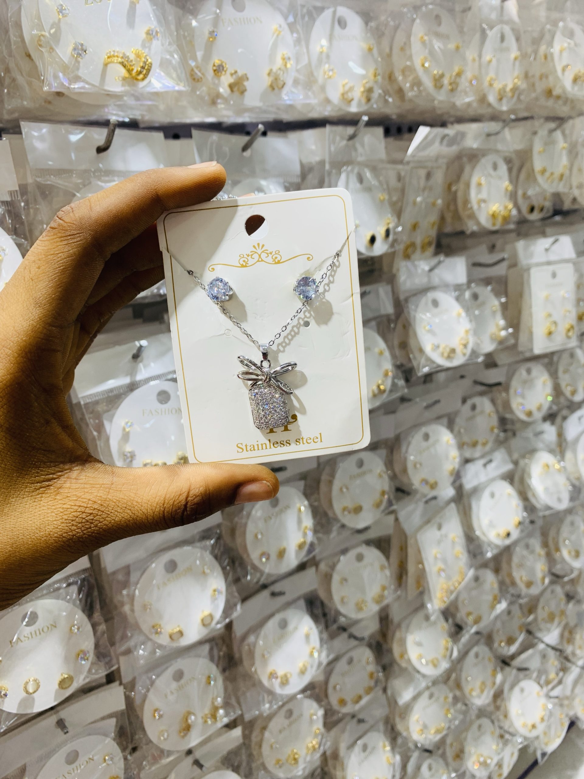 Previous Product Next Product Silver steel shiny set ₦1,200 SKU: 58314 Categories: Earrings, Necklaces 6 in stock 58314 Silver steel shiny set quantity Buy Now Reviews (0) Reviews There are no reviews yet. Be the first to review “Silver steel shiny set” Cancel replyYour email address will not be published. Required fields are marked *Your rating * Rate… Perfect Good Average Not that bad Very poor Your review *Name * Email * Save my name, email, and website in this browser for the next time I comment. Opens in a new window Tweet This Product Opens in a new window Share on Facebook Opens in a new window Pin This Product Opens in a new window Mail This Product Related products Quick View Quick View Earrings, NecklacesSteel Gold flower set ₦2,000 Buy Now Quick View Quick View EarringsPaparazzi Purple Earrings ₦1,000 Buy Now Quick View Quick View EarringsOil drop earrings 07 ₦1,000 Buy Now
