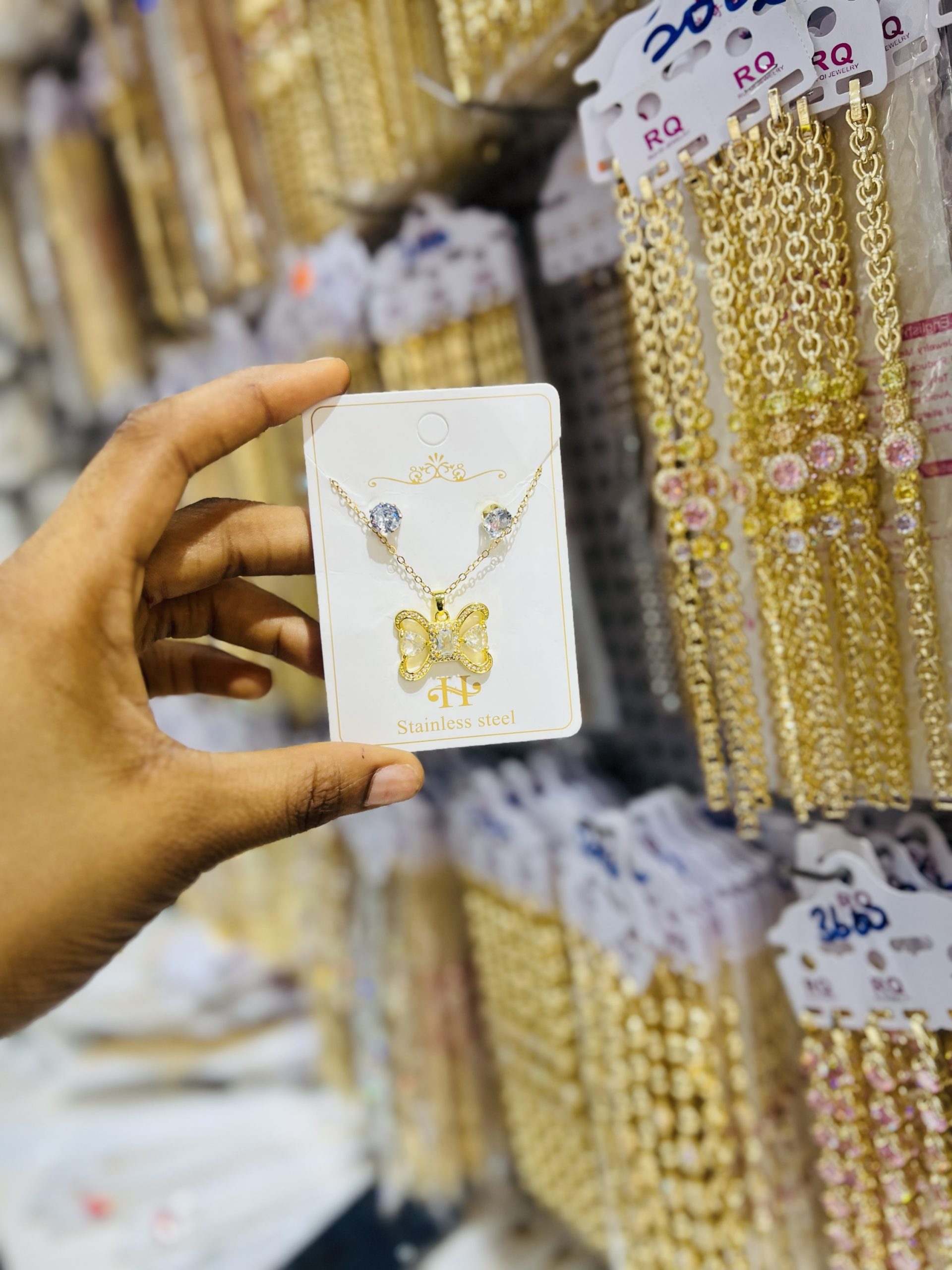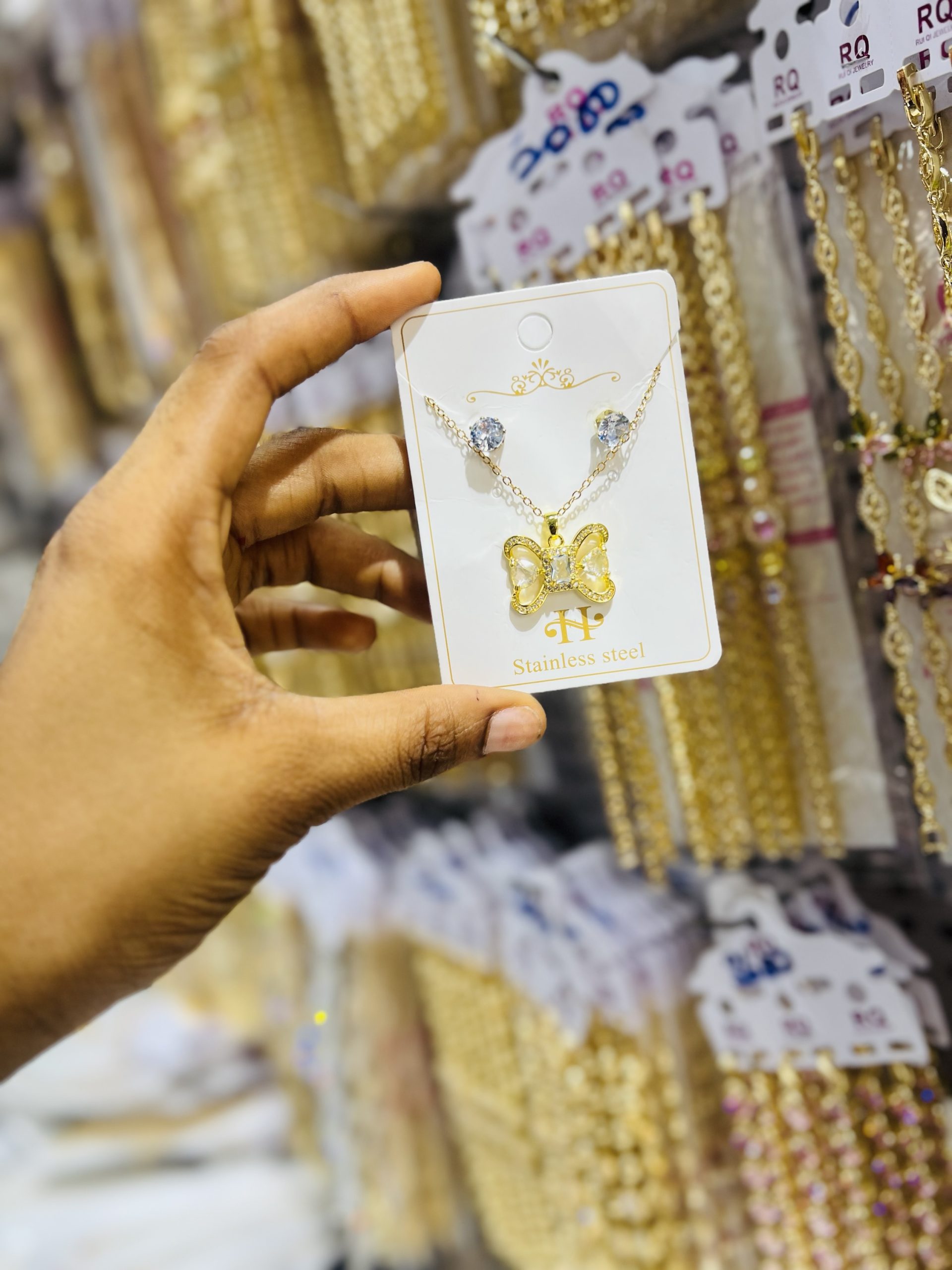 Previous Product Next Product Gold Steel Bow Tie Set ₦1,200 SKU: 57840 Category: Necklaces 4 in stock 57840 Gold Steel Bow Tie Set quantity Buy Now Reviews (0) Reviews There are no reviews yet. Be the first to review “Gold Steel Bow Tie Set” Cancel replyYour email address will not be published. Required fields are marked *Your rating * Rate… Perfect Good Average Not that bad Very poor Your review *Name * Email * Save my name, email, and website in this browser for the next time I comment. Opens in a new window Tweet This Product Opens in a new window Share on Facebook Opens in a new window Pin This Product Opens in a new window Mail This Product Related products Quick View Quick View NecklacesMD Multi Colored Set ₦13,800 Buy Now Quick View Quick View NecklacesZirconia Necklace 012 ₦5,000 Buy Now Quick View Quick View Moissanite Jewelries, NecklacesTeddy Moissanite necklace ₦45,000 Buy Now