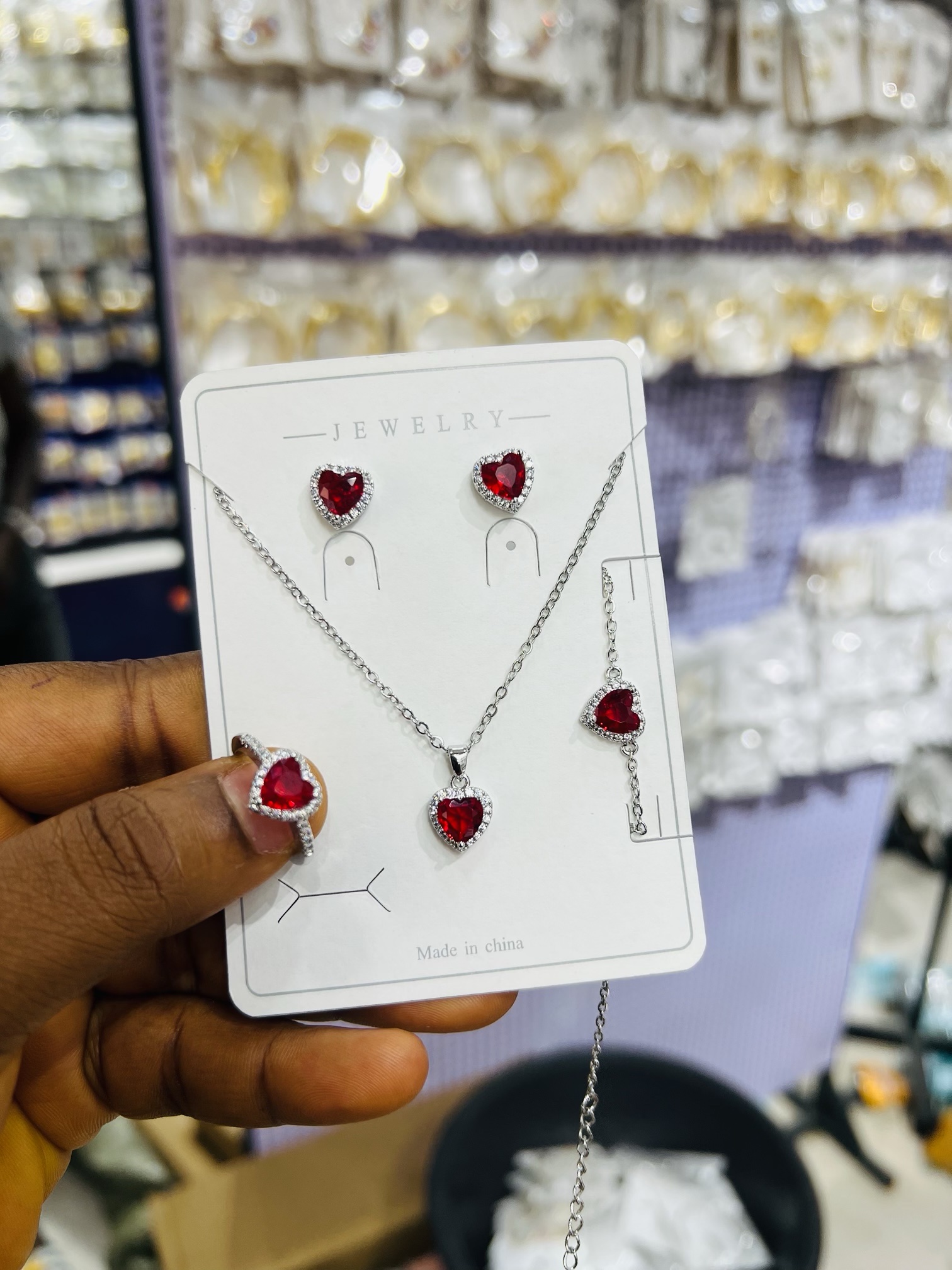 Previous Product Next Product Titanium red love set ₦6,000 SKU: 56448 Category: Necklaces 7 in stock 56448 Titanium red love set quantity Buy Now Reviews (0) Reviews There are no reviews yet. Be the first to review “Titanium red love set” Cancel replyYour email address will not be published. Required fields are marked *Your rating * Rate… Perfect Good Average Not that bad Very poor Your review *Name * Email * Save my name, email, and website in this browser for the next time I comment. Opens in a new window Tweet This Product Opens in a new window Share on Facebook Opens in a new window Pin This Product Opens in a new window Mail This Product Related products Quick View Quick View NecklacesSteel gold necklace 002 ₦1,300 Buy Now Quick View Quick View Moissanite Jewelries, NecklacesAngel Moissanite Necklace ₦45,000 Buy Now Quick View Quick View NecklacesZirconia Necklace 012 ₦5,000 Buy Now