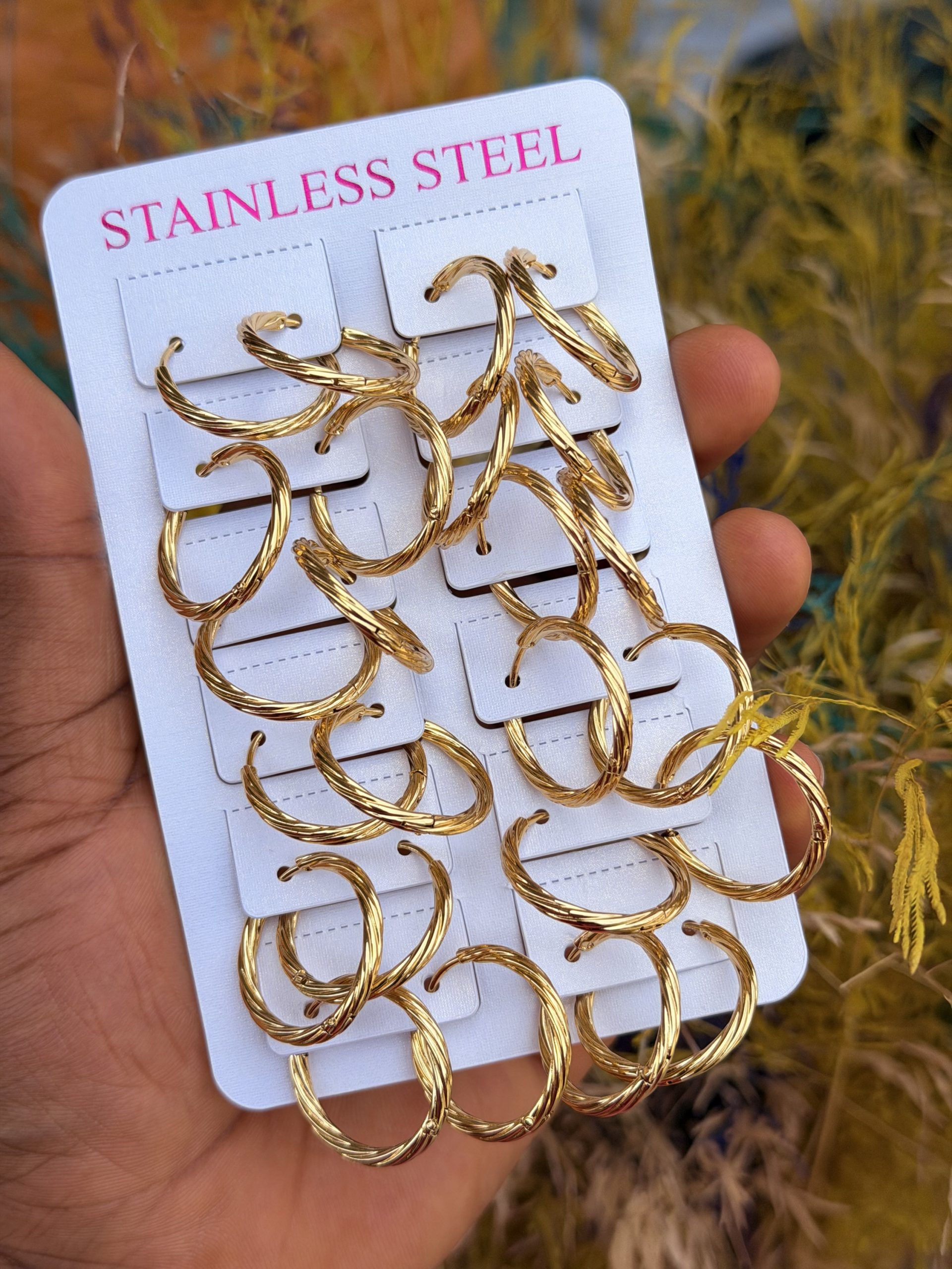 Previous Product Next Product Twisted hoop earrings (12pcs) ₦4,800 SKU: 66295 Category: Earrings 8 in stock 66295 Twisted hoop earrings (12pcs) quantity Buy Now Reviews (0) Reviews There are no reviews yet. Be the first to review “Twisted hoop earrings (12pcs)” Cancel replyYour email address will not be published. Required fields are marked *Your rating * Rate… Perfect Good Average Not that bad Very poor Your review *Name * Email * Save my name, email, and website in this browser for the next time I comment. Opens in a new window Tweet This Product Opens in a new window Share on Facebook Opens in a new window Pin This Product Opens in a new window Mail This Product Related products Quick View Quick View EarringsSunnice earrings 011 ₦5,500 Buy Now Quick View Quick View EarringsSunnice luxury earrings 005 ₦3,700 Buy Now Quick View Quick View EarringsOil drop earrings 019 ₦1,000 Buy Now