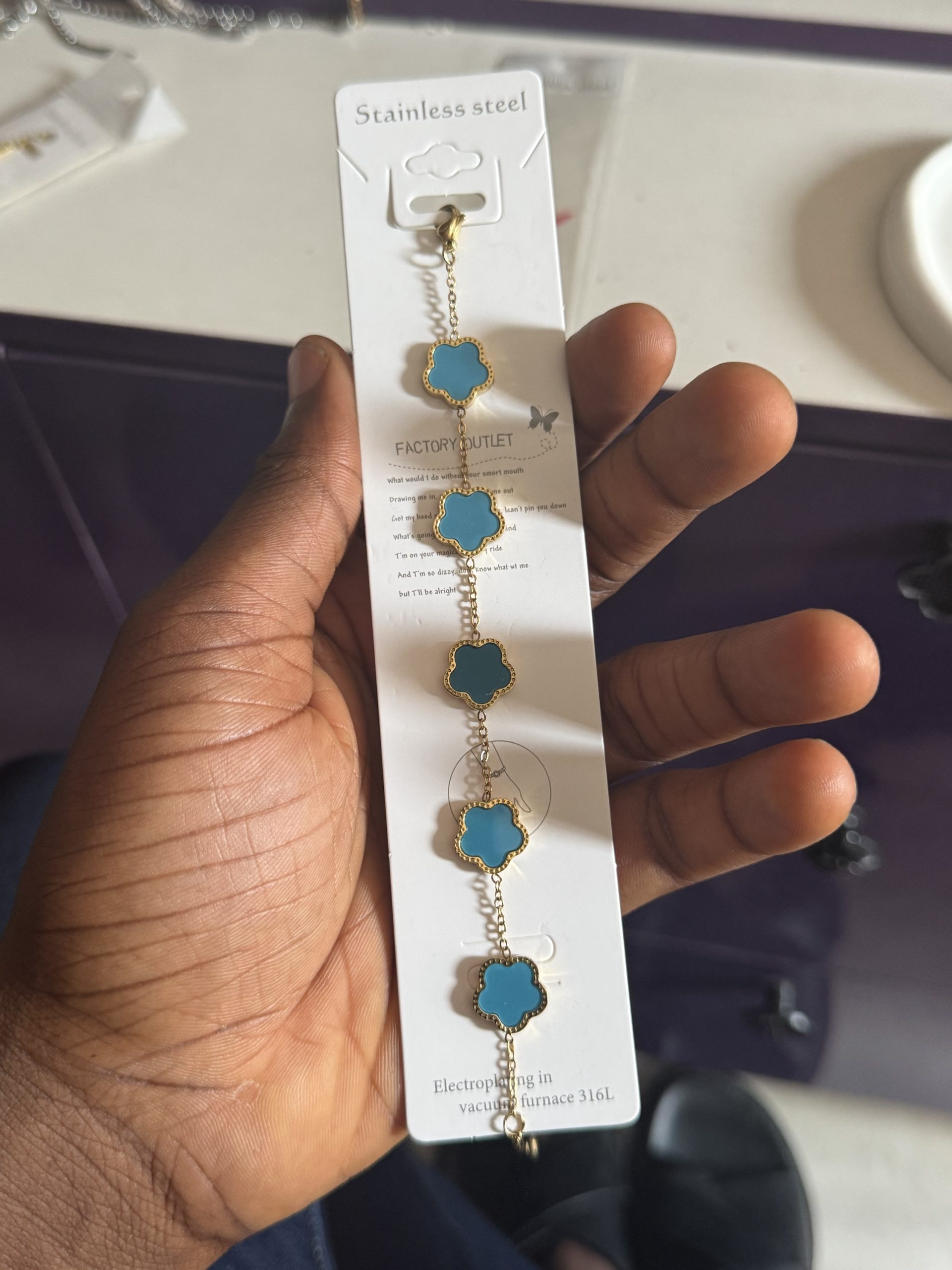 Previous Product Next Product Twisted stainless steel make bracelet ₦2,099 Category: Bracelets 22 in stock Twisted stainless steel make bracelet quantity Buy Now Reviews (0) Reviews There are no reviews yet. Be the first to review “Twisted stainless steel make bracelet” Cancel replyYour email address will not be published. Required fields are marked *Your rating * Rate… Perfect Good Average Not that bad Very poor Your review *Name * Email * Save my name, email, and website in this browser for the next time I comment. Opens in a new window Tweet This Product Opens in a new window Share on Facebook Opens in a new window Pin This Product Opens in a new window Mail This Product Related products Quick View Quick View Moissanite Jewelries, BraceletsRed Vca Moissanite bracelet ₦45,999 Buy Now Quick View Quick View BraceletsHalf stone bracelet 015 ₦1,599 Rated 5.00 out of 5Buy Now Quick View Quick View BraceletsCeramic bracelet 006 ₦2,799 Rated 4.00 out of 5Buy Now