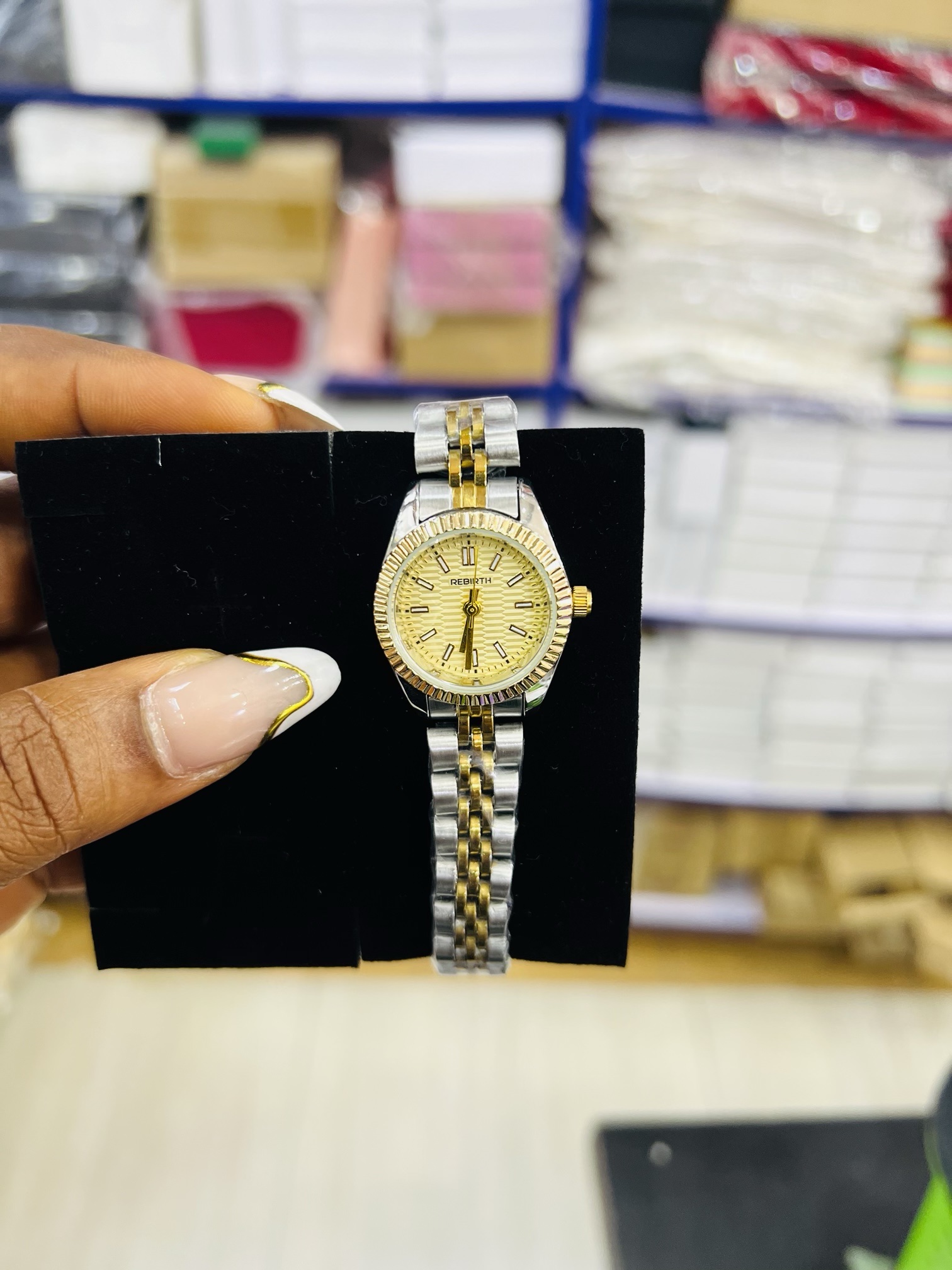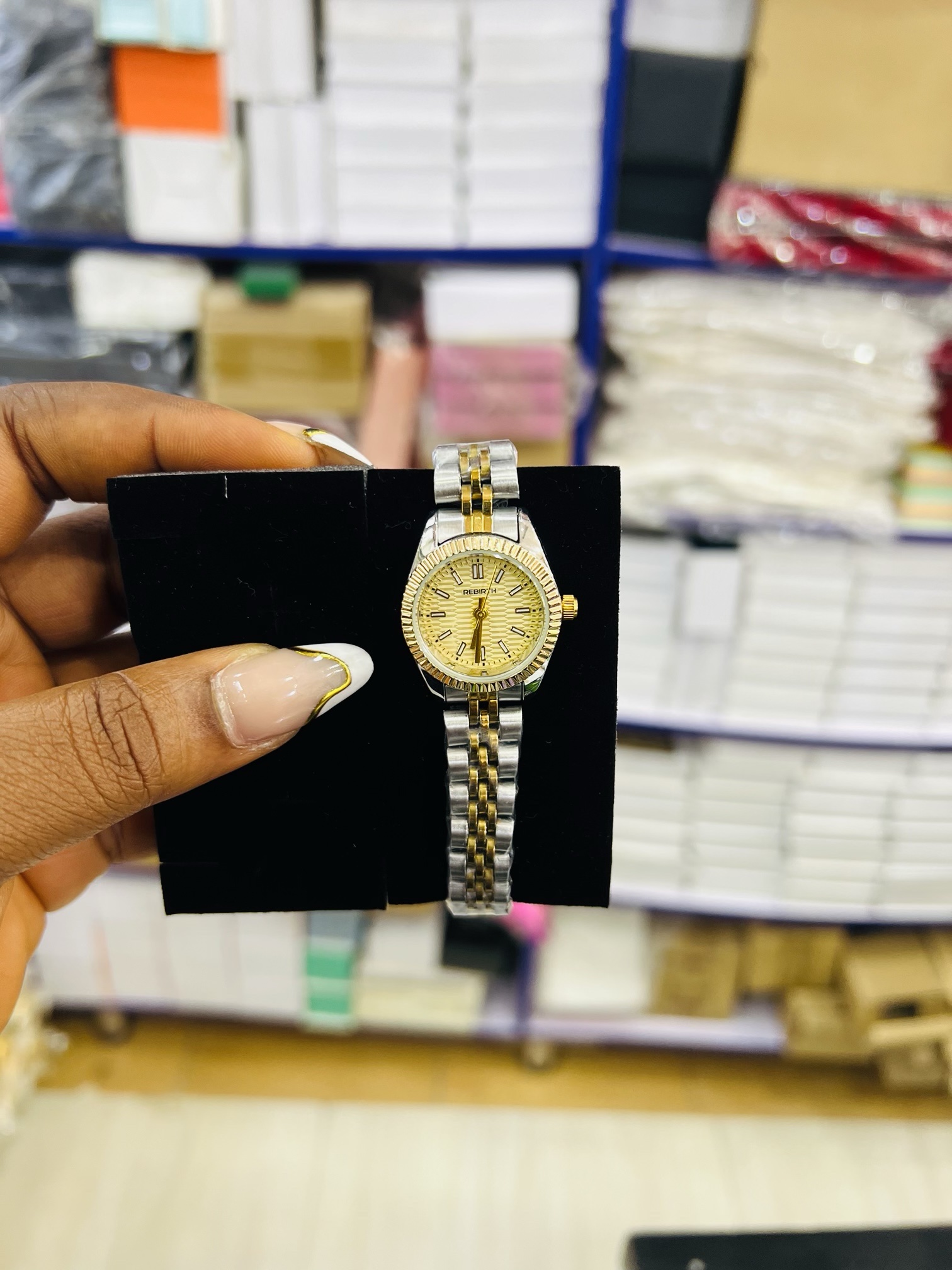 Previous Product Next Product Two toned rebirth watch ₦10,000 Category: Watches Out of stock Reviews (0) Reviews There are no reviews yet. Be the first to review “Two toned rebirth watch” Cancel replyYour email address will not be published. Required fields are marked *Your rating * Rate… Perfect Good Average Not that bad Very poor Your review *Name * Email * Save my name, email, and website in this browser for the next time I comment. Opens in a new window Tweet This Product Opens in a new window Share on Facebook Opens in a new window Pin This Product Opens in a new window Mail This Product Related products Quick View Quick View WatchesBvlgari gold black face twisted watch ₦10,000 Buy Now Quick View Quick View WatchesRebirth brown leather watch ₦9,500 Buy Now Quick View Quick View WatchesG shock orbit white boxed ₦10,000 Buy Now