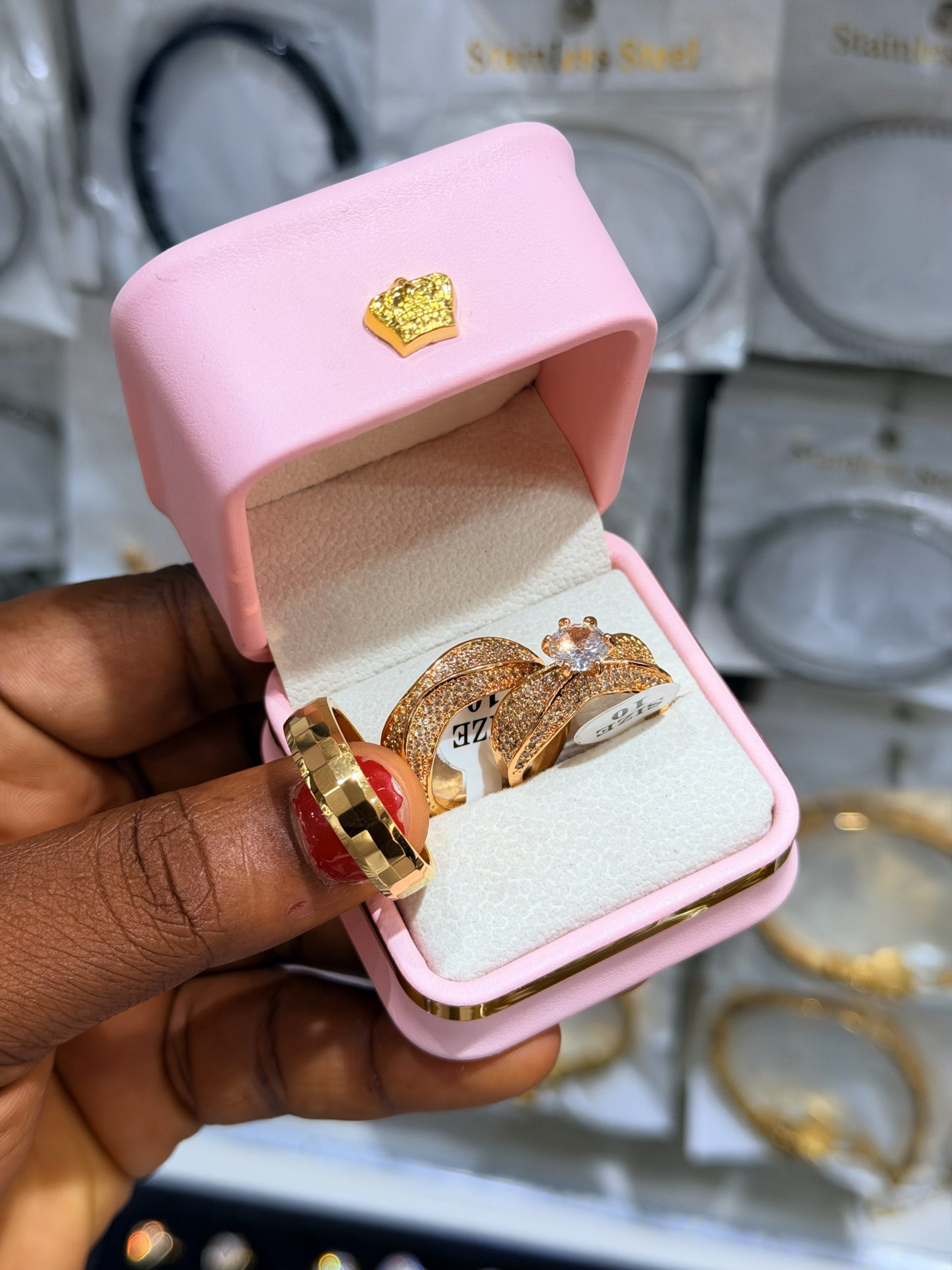 Previous Product Next Product Wedding ring set with box 004 ₦12,000 SKU: 62464 Category: Rings 12 in stock 62464 Wedding ring set with box 004 quantity Buy Now Reviews (0) Reviews There are no reviews yet. Be the first to review “Wedding ring set with box 004” Cancel replyYour email address will not be published. Required fields are marked *Your rating * Rate… Perfect Good Average Not that bad Very poor Your review *Name * Email * Save my name, email, and website in this browser for the next time I comment. Opens in a new window Tweet This Product Opens in a new window Share on Facebook Opens in a new window Pin This Product Opens in a new window Mail This Product Related products Quick View Quick View Bracelets, RingsGold Green Stone Bracelet and Ring ₦2,000 Buy Now Quick View Quick View RingsSweet oval cut wedding ring size 9 ₦9,500 Rated 4.00 out of 5Buy Now Quick View Quick View RingsXuping ring 003 ₦4,500 Buy Now